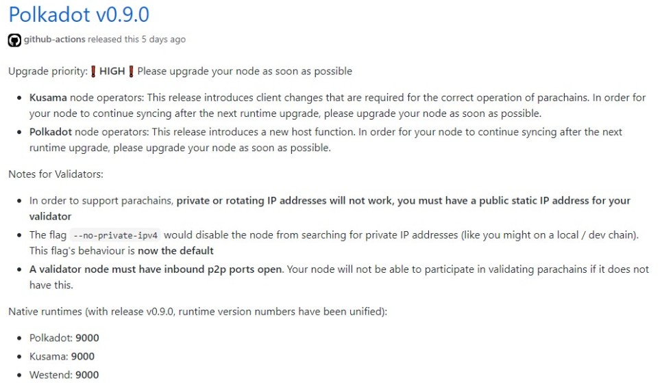자료출처: https://github.com/paritytech/polkadot/releases/tag/v0.9.0