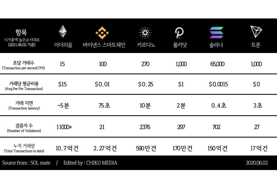[치코미디어] 이더리움 VS 바이낸스 스마트체인 VS 솔라나 전격 비교