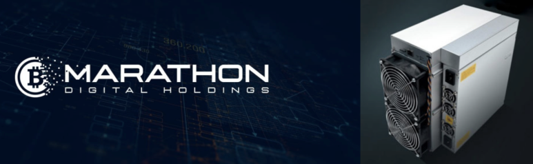마라톤 디지털 홀딩스 로고와 S19 Pro 사진