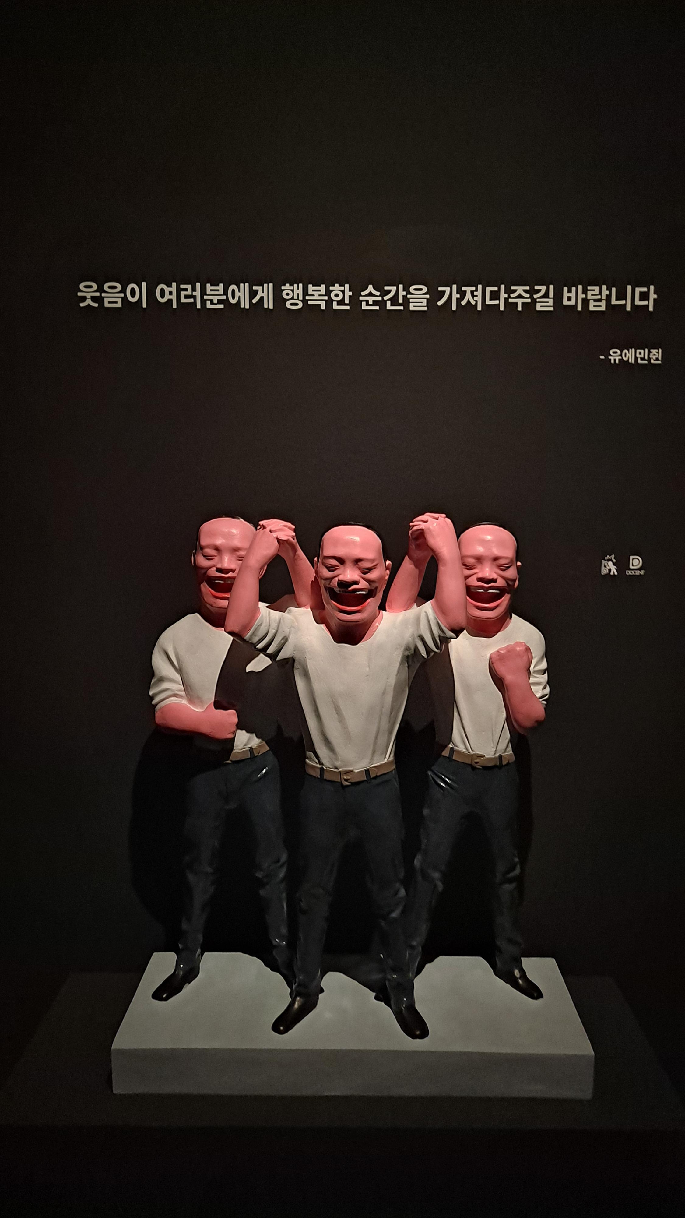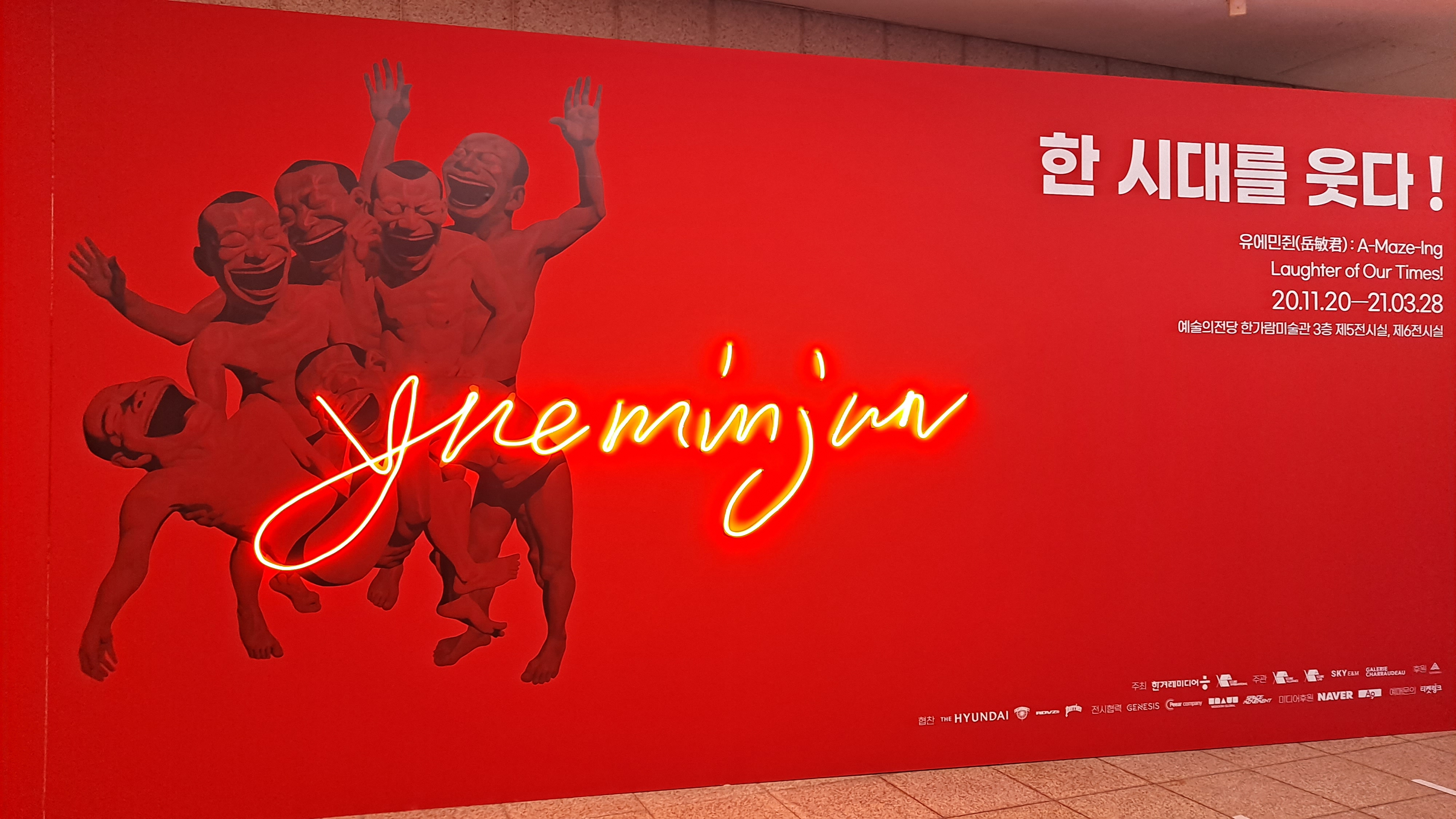 중국 현대미술의 4대 천왕 중 한명으로 불리는 유에민쥔(岳敏君) 전시회가 국내 최초로 예술의 전당, 한가람미술관에서 전시되고 있다.
