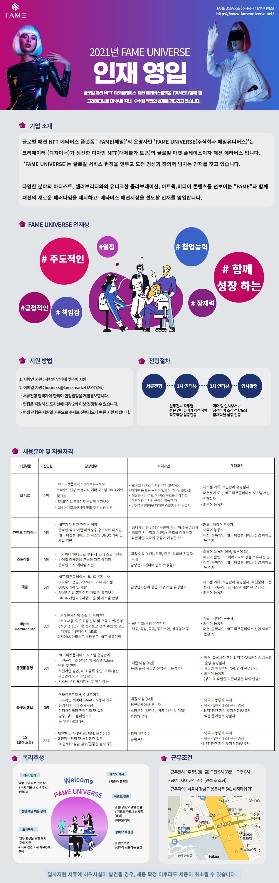 [페임 채용] 글로벌 패션NFT 플랫폼 'FAME' 인재 채용