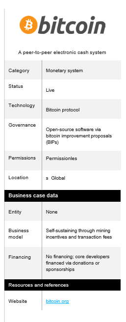 비트코인은 공개 키 암호화와 기장에 대한 혁신적인 접근 방식을 사용하여 위에서 설명한 권한 부여, 대자대조표 확인, 이중 지출 금지, 자산 전달 및 기록 불변성을 달성한다. 최소한의 비용으로 거의 실시간으로 발생한다.