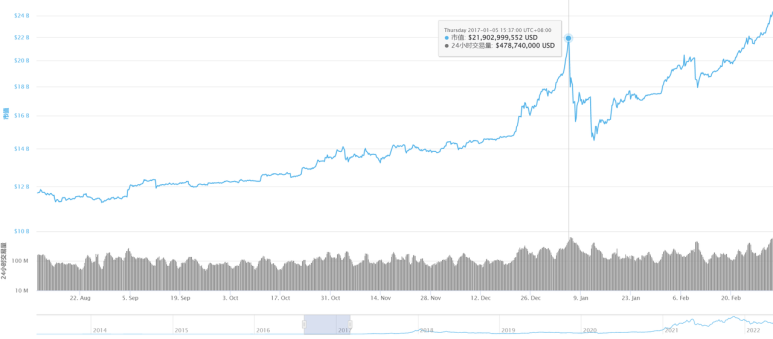 2017년 전체 암호화폐 시가총액은 20조 달러에 달했다.