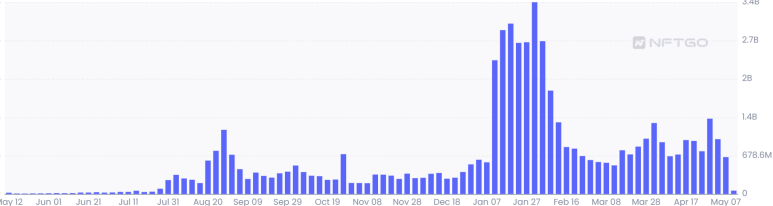 이 과대광고 사이클과 다른 NFT 프로젝트에 미치는 영향을 현재의 시장 정서와 비교하였다. 그래서 현재의 시장 심리를 대변하기 위해 5월 1일부터 5월 15일까지의 시장 데이터를 선정해서 분석을 진행하였다.