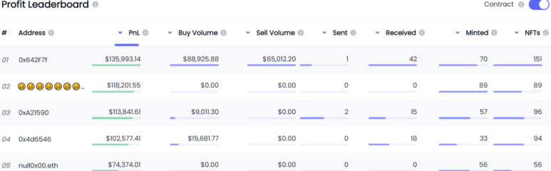아래 표는 6월 1일과 6월 5일이 이 NFT 프로젝트의 집중적인 거래 기간임을 보여준다. 홀더와 트레이더 차트까지 합치면 지난 6월 5일 ill poop it NFT 프로젝트가 대량으로 거래된 것을 알 수 있고, 현재 거래량이 점차 둔화되고 있으며 매도자들이 시작 당시보다 훨씬 적은 것으로 나타났다.
