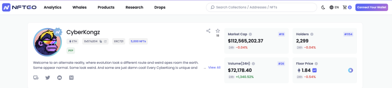 ▶ NFTGo는 전 디지털 세계의 NFT 관련 데이터를 집계하여 제공하는 NFT 전문 애널리틱스 플랫폼이다.
