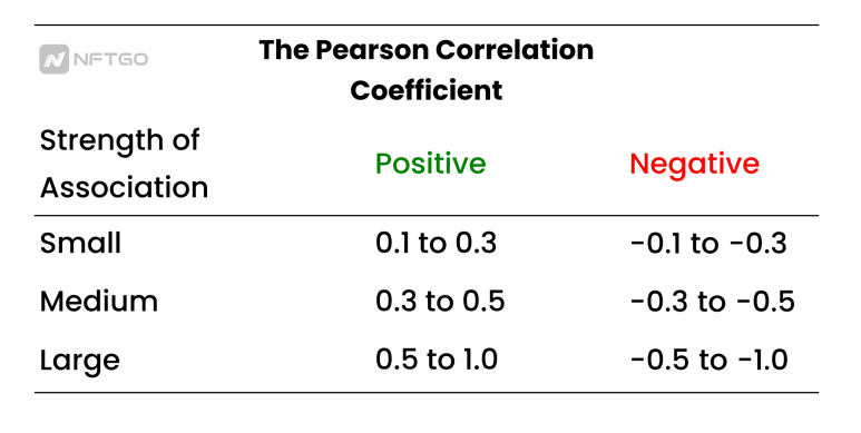 NFT 및 ETH에 대한 피어슨 상관 관계 분석
