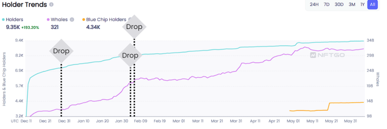 Clone X, Holder Trends (출처 : NFTGo.io )