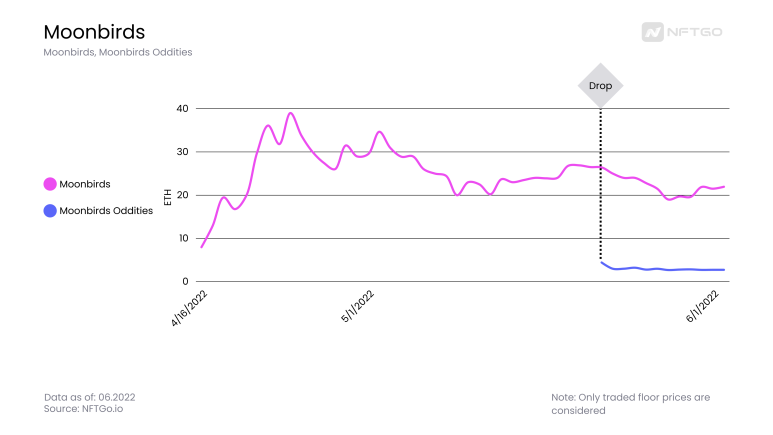 Karafurus와 비슷하게, Moonbirds Oddities는 한때 세컨더리 시장에서 거대한 성장을 이루어냈다. Oddities는 공개되지 않았고, 이것이 지난 몇 주 동안 가격이 그대로 유지된 이유다.