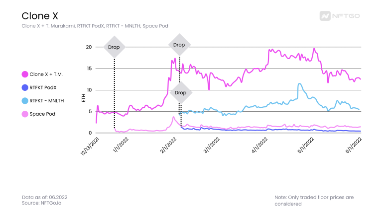 Airdrops 퍼포먼스, 2022: Clone X 생태계(출처: NFTGo.io)