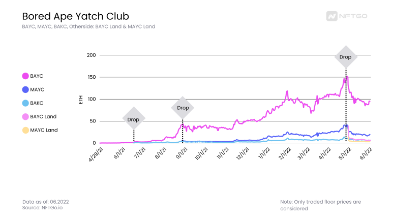 에어드랍 퍼포먼스, 2022: BAYC 생태계(출처: NFTGo.io)