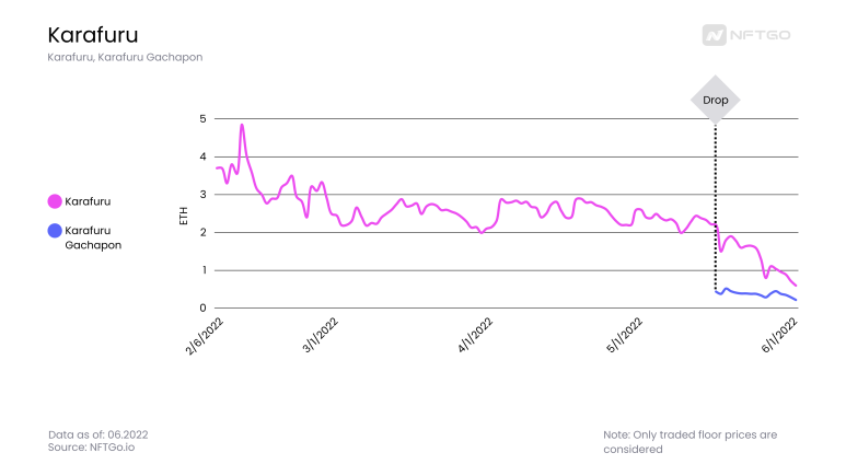 한편, Gachapon이 공개한 NFT는, 미공개보다 「실질적인 바닥가격」을 반영하고 있다. 시장이 NFT의 특성을 알고 있기 때문에, 바닥 가격이 하락하는 것이 일반적이며, 주로 공통적인 특성을 가진 NFT에 영향을 준다. 그러나 투자자들이 세컨더리 컬렉션의 특성을 알고 있었기 때문에 가장 희귀한 NFT들이 당시 바닥 가격에서 약 3배 이상에 거래되기 시작했다는 점은 언급할 필요가 있다.