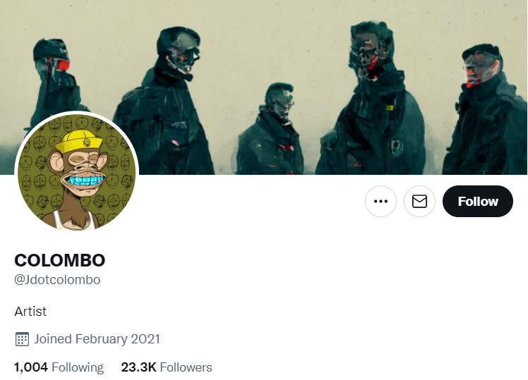 @jdotcolombo는 유명한 트위터 셀럽으로 22.5K의 팔로워를 보유하고 있다.그는 BAYC를 여러번 트윗했다.
