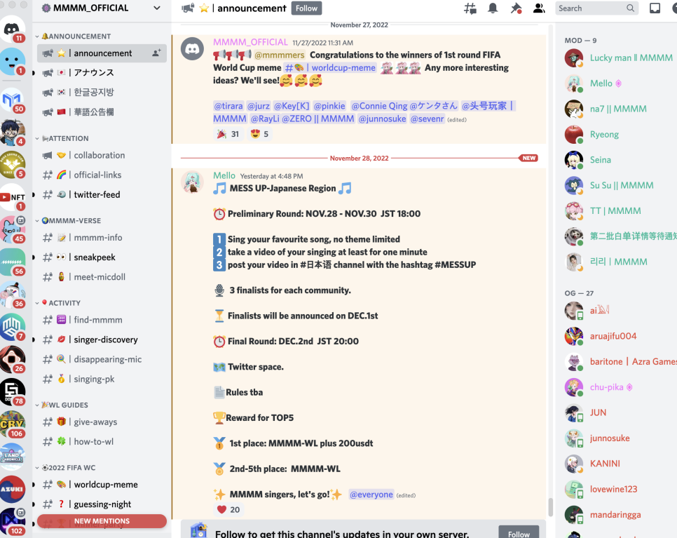| [MMMM] 웹3 뮤직엔터테인먼트 앱 알파테스트_한국 노래 부르기 (0) | 2022.11.28 |