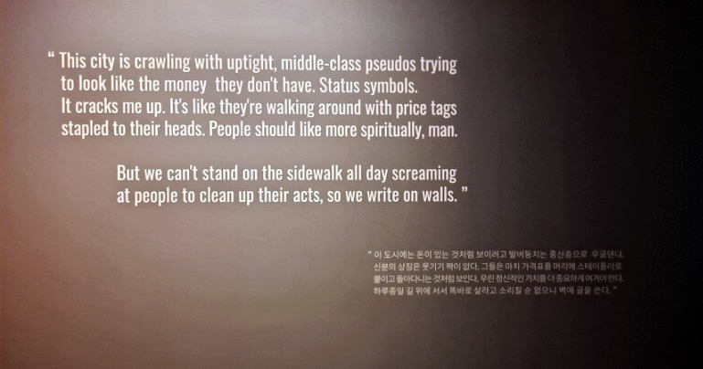한국에서 태어났더라면 길에서 그래피티를 그리다가 가난하게 사라졌을지도 모르는 현실이다.