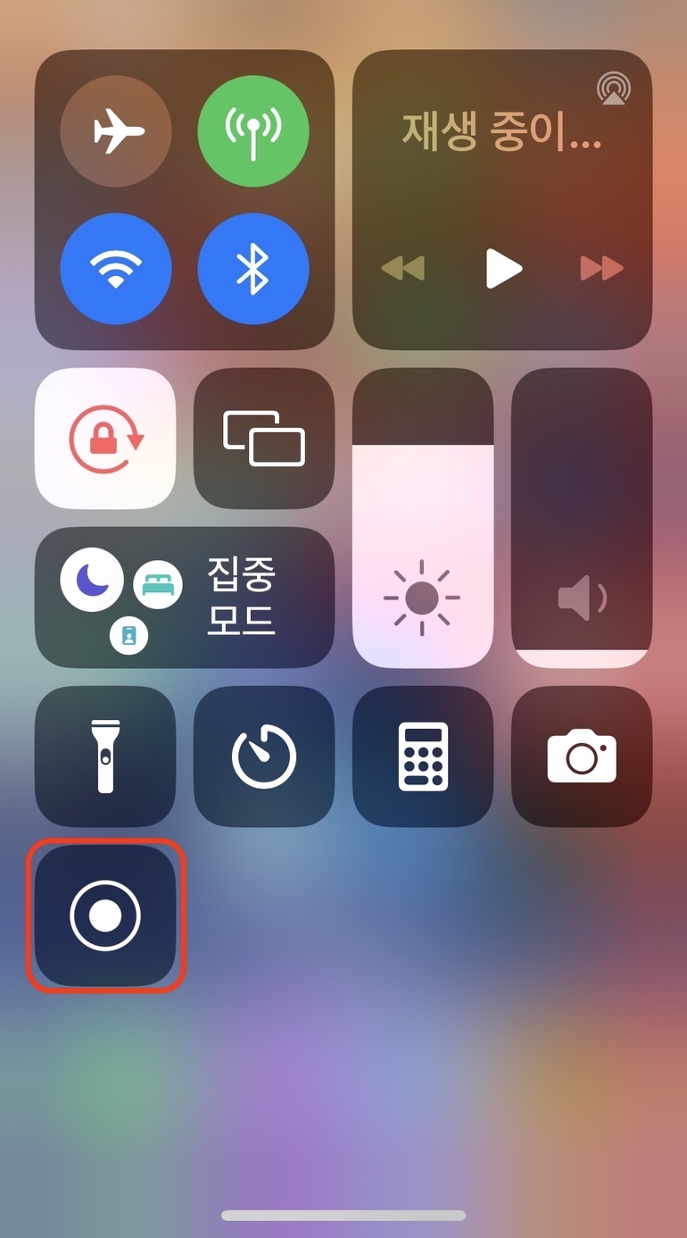 2. 홈 화면에서 상단에서 하단으로 손가락으로 스크롤하면 나오는 제어 센터 하단에 빨간색으로 표시한 녹화 버튼이 생겼다.