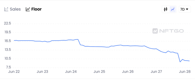 2023년 6월 29일, 아즈키 엘리멘탈(Azuki Elementals)의 2번째 프리세일 민팅은 시작하자마자 20분만에 끝났다. 그 후 아즈키 컬렉션의 가격은 하락하여 지난 7일 동안 약 41% 하락하여 8.88 ETH에 안착했다.