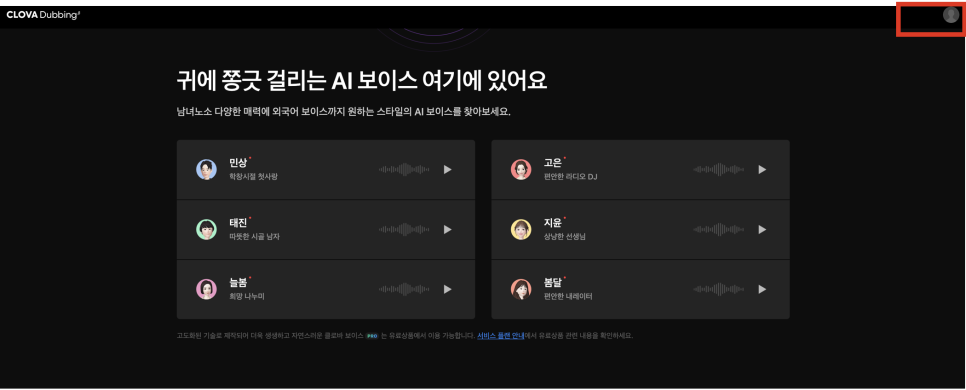 클로바 더빙 홈페이지: https://clovadubbing.naver.com/