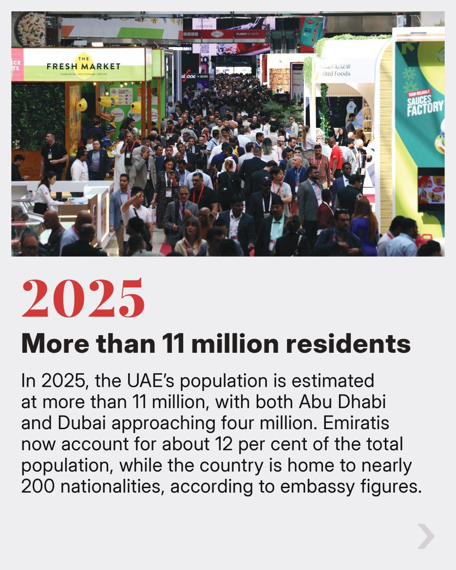 UAE는 해안가의 작은 정착지에서 시작해, 꾸준한 경제 성장과 수십 년간의 인프라 개발을 통해 1,100만 명이 넘는 국가로 성장했다.