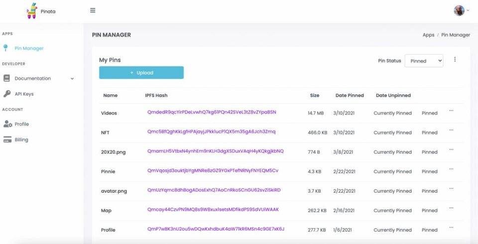 피나타(Pinata): IPFS/Filecoin 체인 무버. 피나타는 NFT 플랫폼을 Web 2.0에서 Web 3.0으로 이동시키기 위해 NFT 플랫폼을 연결하는 역할이다. 예를 들어 NFT 음악 타오바오로 알려진 Rarible과 세계 최대의 NFT 거래 플랫폼인 OpenSea는 피나타의 핀 매니저(Pin Manager)를 통해 영구 저장 하는 방법을 제공한다. NFT의 소유권을 로컬로 기록한다.