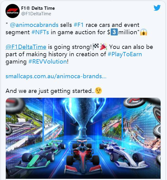 게이머는 F1 Delta Time이라는 이더리움 기반 게임에서 자동차 부품 및 드라이버를 포함한 NFT 컬렉션을 구축 할 수 있다. 이 게임은 MotoGP 및 Formula E를 포함하여 NFT에서 수백 개의 브랜드와 협력하고있는 F1 파트너인 애니모카 브랜드(Animoca Brands)에 의해 개발되었다.
